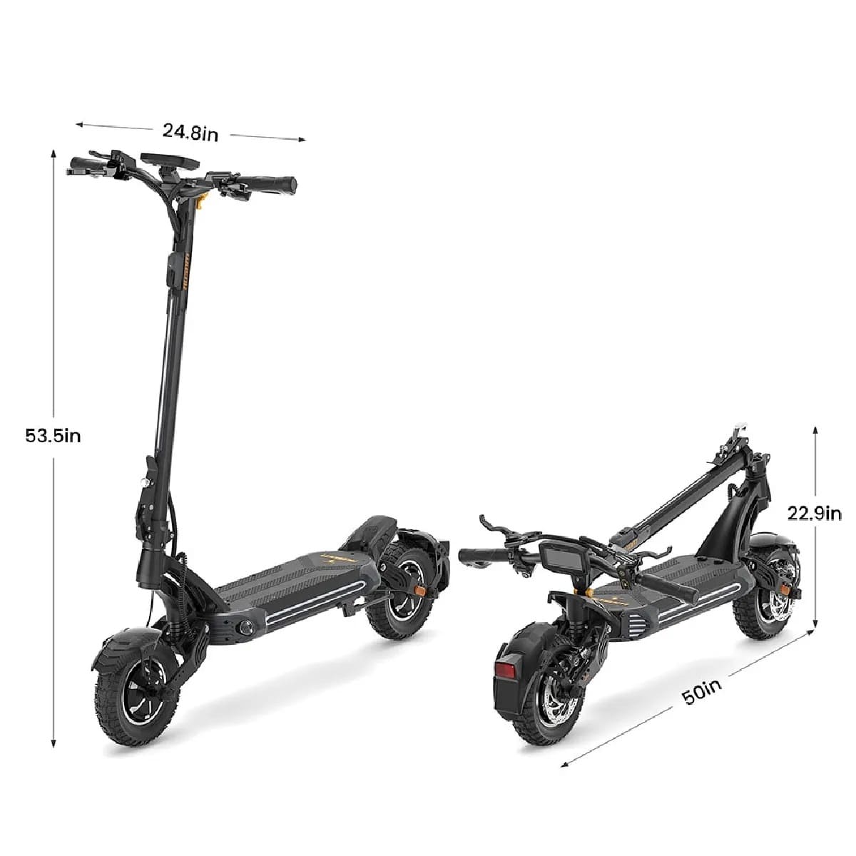 Les pneus tout-terrain de 10 pouces par 3 pouces sont spécialement conçus pour résister à l’usure et aux crevaisons. Leur épaisseur et leur adhérence offrent une excellente stabilité sur différents sols, qu’il s’agisse de gravier, de terre ou de bitume. Vous pouvez ainsi aborder chaque trajet avec confiance, quelle que soit la météo ou la nature du sol.