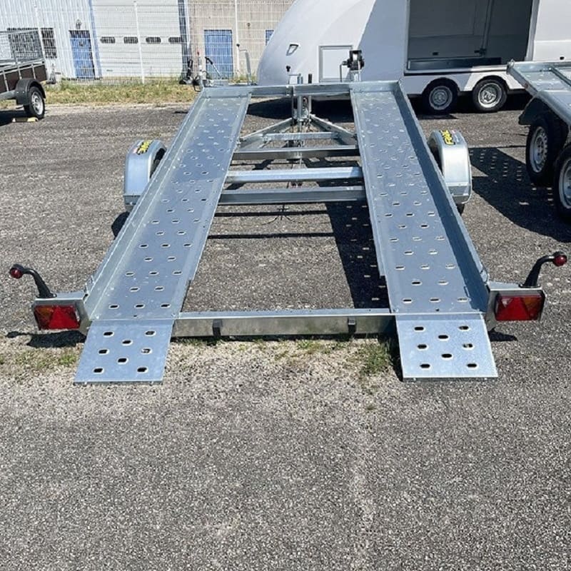 Équipée d’un système de basculement manuel, de rails de roulage antidérapants et d’une suspension à torsion, elle offre une polyvalence et une sécurité exceptionnelles pour le transport de vos véhicules.
