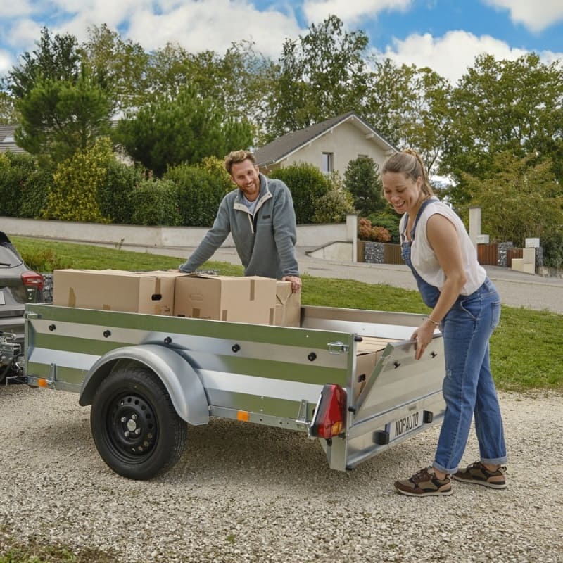 Les ridelles peuvent aussi jouer le rôle de réhausses remorque 750 kg NORAUTO. Cette modularité vous permet d’adapter votre remorque à la charge du jour. Besoin de transporter du vrac un jour, des équipements le lendemain ? Le système s’adapte rapidement, sans démontage complexe.
