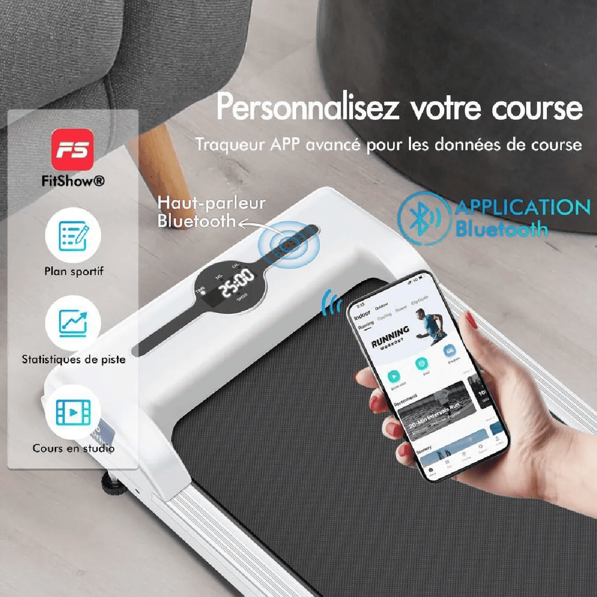 • Technologie Bluetooth : intégrée, compatible avec l’application FitShow® pour le suivi des entraînements
