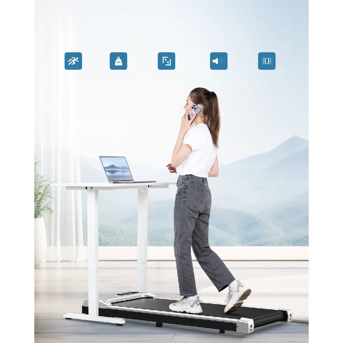 Le Tapis de marche portable DSKEUZEEW Walking Pad offre une plage de vitesse réglable de 1 à 8 km/h. Cette grande souplesse vous permet d’adapter vos séances selon vos besoins du jour. Que vous cherchiez à activer doucement votre circulation ou à marcher d’un pas plus soutenu, vous pouvez ajuster l’intensité à tout moment, en toute simplicité.