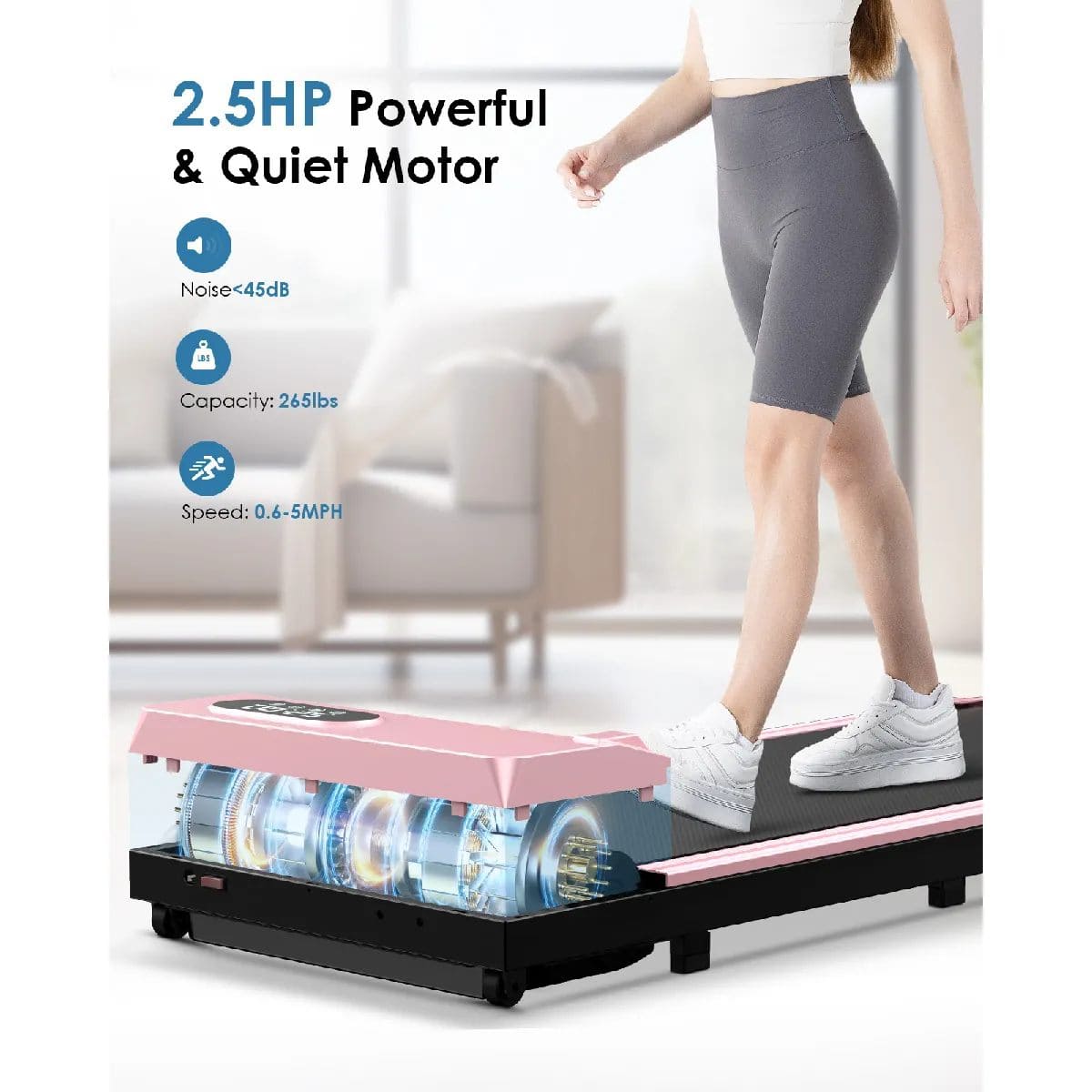 Le Tapis de marche portable DSKEUZEEW Walking Pad intègre un moteur haute performance de 2,5 CV. Ce moteur puissant vous permet d’atteindre une vitesse maximale de 8 km/h. Il reste stable à toutes les allures et garantit une bonne fluidité de marche ou de course légère. Même à vitesse élevée, il ne génère ni à-coups ni vibrations désagréables.