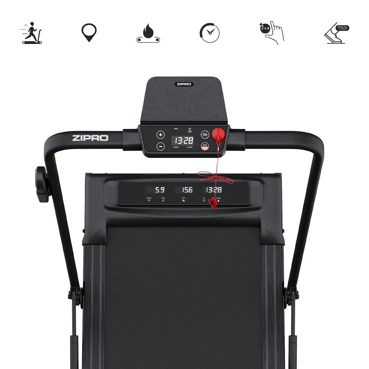 Le Zipro Newlite propose une interface utilisateur simple et très fonctionnelle. Son écran LED lumineux affiche en temps réel toutes les informations essentielles : vitesse actuelle, durée de la séance, distance parcourue, nombre de pas effectués, ainsi que les calories brûlées. Ces données vous aident à mieux suivre votre progression et à rester motivé durant l’entraînement.