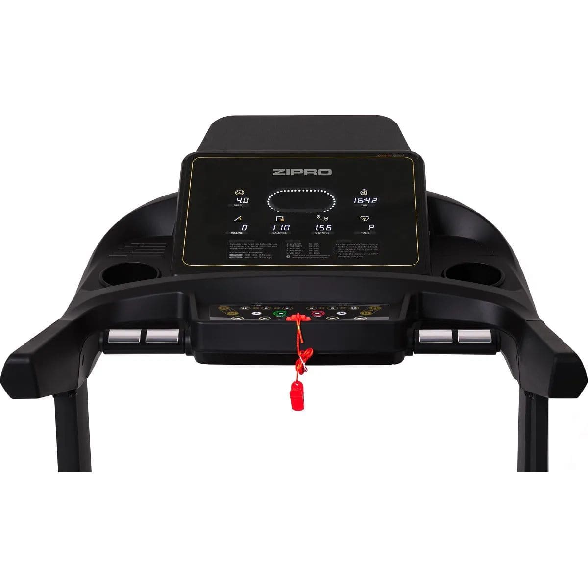 Le tapis de course Zipro Pacemaker iConsole+ est équipé d’un grand écran LED à sept fenêtres. Ce tableau de bord offre une lecture claire et simultanée des données clés. Vous pouvez suivre la vitesse, le temps, la distance parcourue, les calories brûlées et votre fréquence cardiaque. Ces informations vous aident à mieux contrôler vos séances et progresser efficacement.
